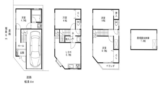 ◆前面道路西側幅員8m北側幅員6m ◆シャッター付車庫